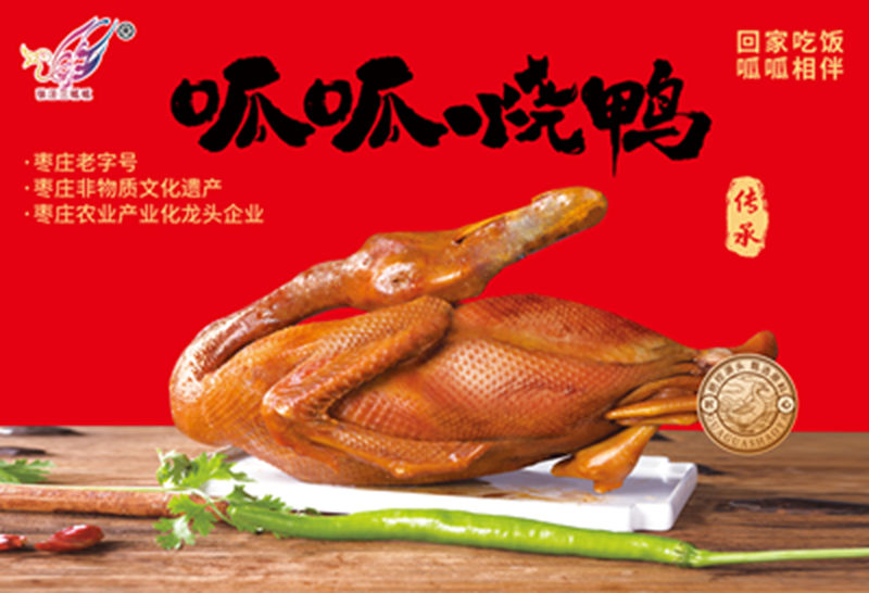 聊起“呱呱哥”这个家喻户晓的品牌,张井科眼里满是自豪,一字一句都透着对家乡的热爱: “呱呱,是鸭子响亮的叫声,是‘顶呱呱’‘呱呱叫’的好寓意;更是我们滕州方言,就是‘拉呱儿’,藏着家乡的烟火气。‘哥’,既象征着我年轻时创业的朝气,也寄托着我们做成鸭业一哥、成为行业头部的愿景。” 通俗简洁、声调上扬,易记易叫,就像呱呱烧鸭一样,接地气、有底气。